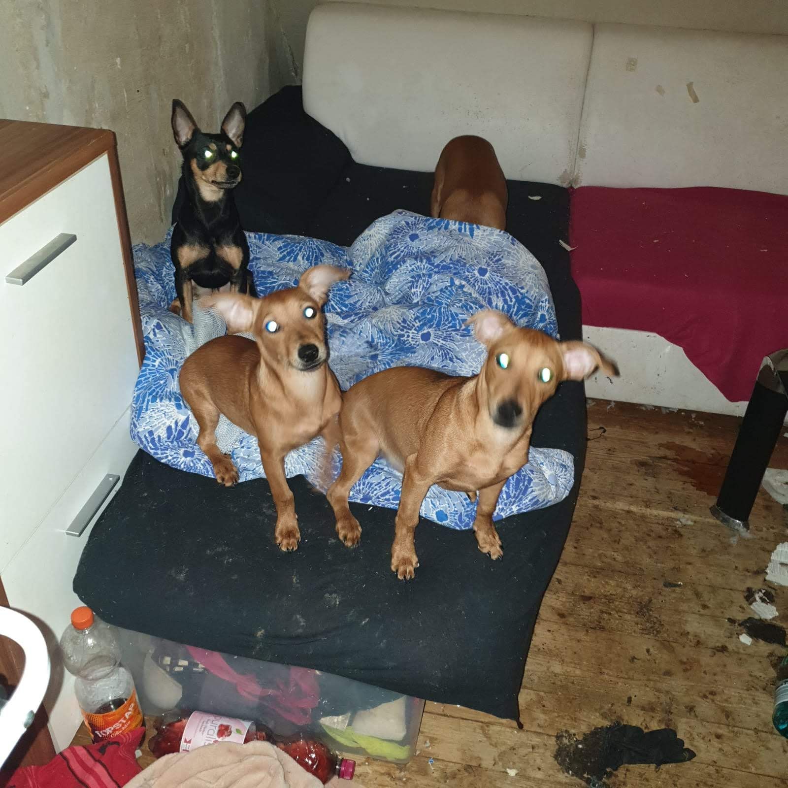 Wir stehen in einem völlig verwahrlosten Haushalt. Der Gestank von Tierfäkalien brennt in der Nase, überall liegt Unrat. Das was mal ein Wohnzimmer war, dient als eine "Hundezuchtstätte". Die Rollläden sind unten, die Fenster geschlossen, Trennwände aus Spanplatten formen mehrere Boxen, in denen Hündinnen mit ihren Welpen eingepfercht sind. Ein Leben in völliger Dunkelheit, ohne frische Luft, ohne sauberes Wasser, ohne Liebe und Fürsorge. Mitten in diesem Chaos hallen Schreie durch das Haus – Protestschreie der Tierbesitzer, während gleichzeitig das laute Weinen der Kinder die Szenerie durchbricht. Kinder, die nicht nur in diesen erschreckenden Zuständen aufwachsen mussten, sondern nun auch mit ansehen, wie die Staatsgewalt ihren gewaltbereiten Vater unsanft in Handschellen auf den Küchenboden zwingt.